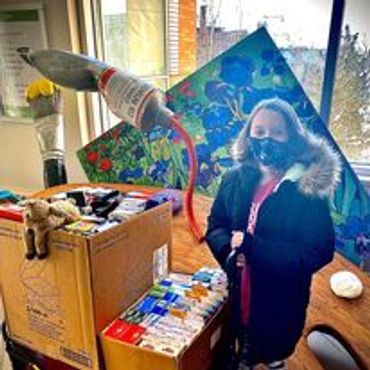 Throughout the year your donations are used in a variety of ways. Cloe experienced extended stays at the hospital during her treatment. During those stays she loved having the opportunity to choose a new activity each day to help pass the time. She also enjoyed music therapy, massage therapy and visits from the hospital service dogs. Cloe now loves being able to deliver boxes of donations several times a year, knowing that she's helping others during their hospital stay.